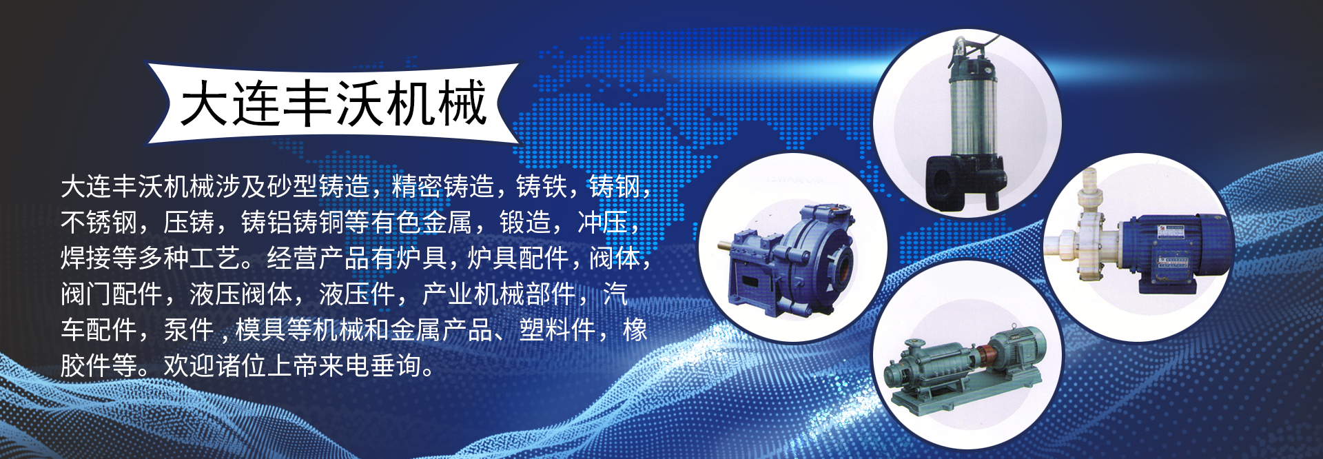 大連豐沃機(jī)械有限公司是一家專業(yè)從事進(jìn)出口業(yè)務(wù)的國(guó)際貿(mào)易公司。公司下有機(jī)械加工實(shí)體并有多家長(zhǎng)期戰(zhàn)略合作企業(yè)。公司從事進(jìn)出口業(yè)務(wù)十余年,主要面向日本,兼顧歐美及東盟。以機(jī)械制造及金屬制品為主。涉及砂型鑄造,精密鑄造,鑄鐵,鑄鋼,不銹鋼,壓鑄,鑄鋁鑄銅等有色金屬,鍛造,沖壓,焊接等多種工藝。經(jīng)營(yíng)產(chǎn)品有爐具,爐具配件,閥體,閥門配件,液壓閥體,液壓件,產(chǎn)業(yè)機(jī)械部件,汽車配件,泵件,模具等機(jī)械和金屬產(chǎn)品、塑料件,橡膠件等。歡迎諸位上帝來電垂詢。